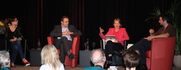 „Ein wesentliches Merkmal eines religiösen Textes ist es, wenn Gotteserkenntnis im Zentrum steht“, betonte Hildegard Keller. Beim Podiumsgespräch in der Reihe „Wechselwirkungen. Religion und Literatur“ hob die einem breiten Publikum aus dem Literaturclub im Schweizer Fernsehen bekannte Germanistin zudem den Genderaspekt hervor. So hätten Männer im Mittelalter zum Beispiel bei der Auslegung des alttestamentlichen Hohen Lieds der Liebe anders als die Frauen einen kognitiven Weg beschritten, indem die universitäre Zunft der Theologen fragte, was Kirchenväter wie Augustinus, Cyprian oder Ambrosius dazu gesagt haben. Frauen hingegen hätten andere Zugangswege zum Hohen Lied gefunden, zumal ihnen die Pforten der Universität verschlossen blieben damals. Für Hildegard von Bingen, Mechthild von Magdeburg oder Hadewijch beispielsweise stand nicht theologische Gelehrsamkeit , sondern die „Erfahrung des Sich-Verschlingen-Lassens“ von Gottes Präsenz im Mittelpunkt. Weibliche Autoren nehmen so in Anspruch, „Posaune Gottes“ oder „Sprachrohr Gottes“ zu sein.