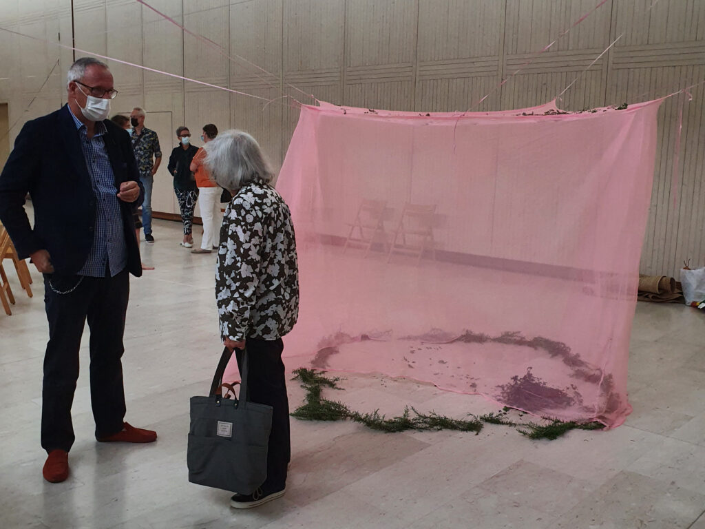 Erfahren: Den beiden bekannten Konzeptkünstlerinnen Monika Gasser und Pia Gisler ist es gelungen, durch eine Installation mit filigranen Stoffen und durcheinanderlaufenden Bändern in Kombination mit aromatischen Kräutern wie Rosmarin und Lavendel im wuchtigen Kirchenraum einen Kontrapunkt zu setzen und Beziehungsmuster sichtbar zu machen. Gleichzeitig bot der Raum den anwesenden Therapeutinnen und Coaches die Möglichkeit, den spirituellen Ursprungsort ihrer Arbeit zu erkunden.